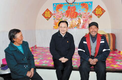 圖為省人大常委會副主任、市委書記李俊明在偏關縣新關鎮(zhèn)高家上石會村高長后家了解增收脫貧情況。本報記者 宮愛文攝