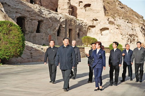 5月11日下午,習(xí)近平在大同市云岡石窟考察歷史文化遺產(chǎn)保護(hù)情況。
