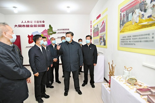 5月11日下午,習(xí)近平走進(jìn)云州區(qū)西坪鎮(zhèn)坊城新村技能培訓(xùn)服務(wù)站,了解新村易地扶貧搬遷情況。 新華社發(fā)