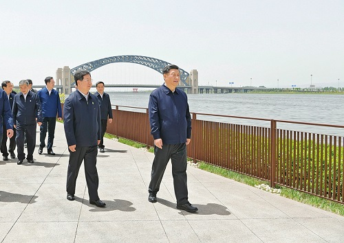5月12日中午,習(xí)近平在汾河太原城區(qū)晉陽橋段考察汾河水治理及沿岸生態(tài)保護(hù)、城市環(huán)境建設(shè)等情況。