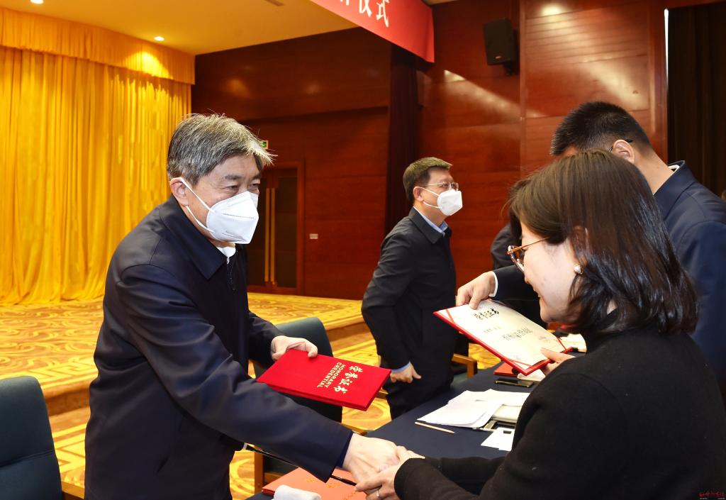 朱曉東為博士服務(wù)團成員頒發(fā)證書。馮曉磊 攝 朱曉東強調(diào),掛職同志要提高政治站位,不負組織重托。把完成組織任務(wù)與實現(xiàn)價值追求結(jié)合起來,珍惜難得的學習鍛煉機會,以只爭朝夕的緊迫感,認真學習、深入思考、主動融入,讓好想法精準落地,讓好思路切實變現(xiàn),努力和忻州一道,緊抓發(fā)展機遇,謀求更大突破。要盡快轉(zhuǎn)換角色,錘煉過硬本領(lǐng)。盡快掌握實情、盡快找準定位、盡快熟悉業(yè)務(wù),結(jié)合自身特長優(yōu)勢,更好發(fā)揮智囊參謀作用,幫助掛職單位破解實際難題、推動拔節(jié)提高,把聰明才智奉獻給秀容大地,高質(zhì)量寫好人生“第二篇博士論文”。要嚴格要求自己,樹立良好形象。繼續(xù)發(fā)揚在原單位的優(yōu)良作風,廉潔自律、克己奉公,切實加強修養(yǎng)和自身建設(shè),堅守初心底線,以自身工作水平、良好形象贏得掛職單位的信賴和廣大干部群眾的信服。要加強隊伍建設(shè),打造品牌團隊。增強團隊意識、整合團隊資源、發(fā)揚團隊優(yōu)勢,重點圍繞太忻一體化經(jīng)濟區(qū)建設(shè)這個重大牽引,著眼秀容新城建設(shè),組織開展集體技術(shù)攻關(guān)、集中專業(yè)指導等主題突出的團隊活動,在打造團隊品牌和亮點的同時,真正融入大局、服務(wù)大局。各級組織人事部門和接收單位要高度重視,切實為博士服務(wù)團成員做好服務(wù)保障工作。