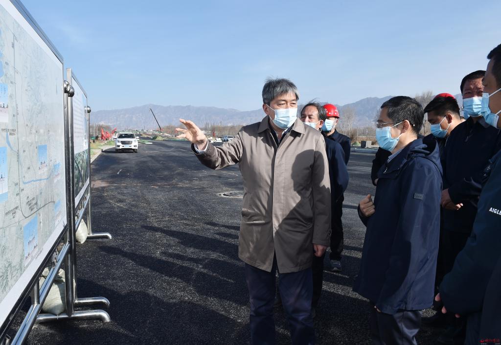 在南環(huán)街東延項(xiàng)目地。馮曉磊 攝 牧馬河生態(tài)公園是市委、市政府踐行“兩山理論”,打造太忻之肺、建設(shè)海綿城市的標(biāo)志性工程。在項(xiàng)目現(xiàn)場,朱曉東詳細(xì)了解項(xiàng)目規(guī)劃設(shè)計(jì)方案、施工進(jìn)度、工程配套、服務(wù)保障等情況,并與項(xiàng)目施工方深入交談,勉勵(lì)他們要樹立“來了忻州就是忻州人”的主人翁意識(shí),嚴(yán)把關(guān)、負(fù)好責(zé),及時(shí)提出意見建議,高標(biāo)準(zhǔn)高品質(zhì)高質(zhì)量推進(jìn)項(xiàng)目建設(shè),切實(shí)讓本地群眾、外來游客和投資興業(yè)的市場主體充分感受到忻州的魅力和特色,增強(qiáng)他們的幸福感、體驗(yàn)感和滿足感。要求各相關(guān)部門要主動(dòng)走出去、開眼界、見世面,學(xué)習(xí)借鑒先進(jìn)做法經(jīng)驗(yàn),以一流的設(shè)施、服務(wù)和管理,讓忻州的人氣旺起來。要堅(jiān)持高起點(diǎn)規(guī)劃、高水平設(shè)計(jì)、高質(zhì)量建設(shè),結(jié)合旅游發(fā)展需要和人民群眾生活需要,著重體現(xiàn)自然生態(tài),不斷豐富功能、業(yè)態(tài),推動(dòng)牧馬河生態(tài)公園成為體現(xiàn)我市形象的地標(biāo)性建筑。 南環(huán)街東延位于忻府區(qū)東南片區(qū),是忻州市城東片區(qū)路網(wǎng)的主骨架,也是東南片區(qū)對(duì)外聯(lián)系的重要通道。朱曉東結(jié)合展板認(rèn)真聽取了相關(guān)工作介紹。他指出,南環(huán)街東延項(xiàng)目是全面提升忻州城市品質(zhì)的重要項(xiàng)目,要統(tǒng)籌規(guī)劃建設(shè),采用先進(jìn)的設(shè)計(jì)理念,認(rèn)真比選方案,充分開展考察論證,確保項(xiàng)目建設(shè)取得實(shí)效。要盤活資源,挖潛增效,全力招大商、招好商,推動(dòng)更多項(xiàng)目在我市落地。