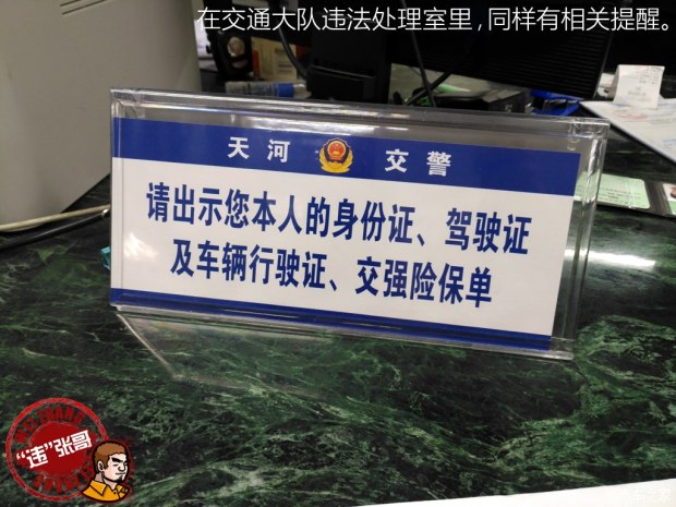 把分?jǐn)?shù)處理完后,心里算是松了一口氣,終于到了最后一步:取證。當(dāng)時(shí)被扣行駛證,我問在場的交警除了把違章處理完,還需要帶什么證件過去。記得他當(dāng)時(shí)的回答是帶上身份證、駕駛證以及行駛證被扣留的憑證即可。所以在確認(rèn)違章完全處理完畢后,我就帶上上述提到的證件和材料去了天河交警大隊(duì)交通違法處理室,可卻無功而返。