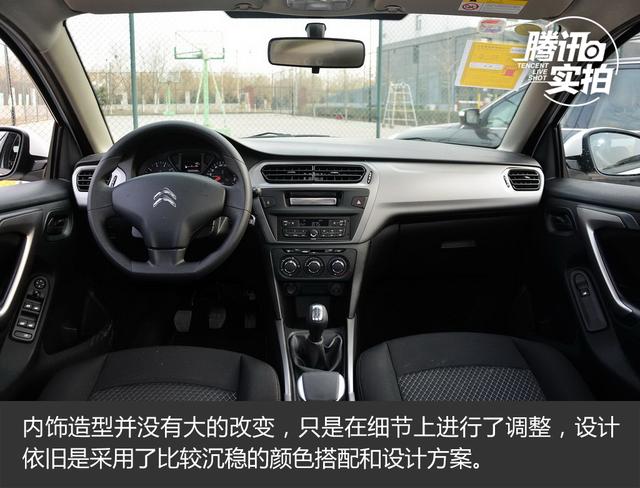內(nèi)飾造型并沒有大的改變,只是在細(xì)節(jié)上進行了調(diào)整,設(shè)計依舊是采用了比較沉穩(wěn)的顏色搭配和設(shè)計方案。中控臺的材質(zhì)還是硬塑料,做工和顏色搭配還算不錯,畢竟它是一臺雪鐵龍的入門級車型。三幅平底方向盤造型看著令人很有好感,而且手感也不錯,支持上下兩向調(diào)節(jié),并不能前后拉伸。指針式儀表盤黑底白字清晰易讀,表盤上新增了雪鐵龍法文LOGO和三叉星式圖案,上方顯示屏的顏色也從紅色變?yōu)榱税咨6嗝襟w系統(tǒng)功能比較單一,可以提供收音機和通過底部USB接駁外部音源。