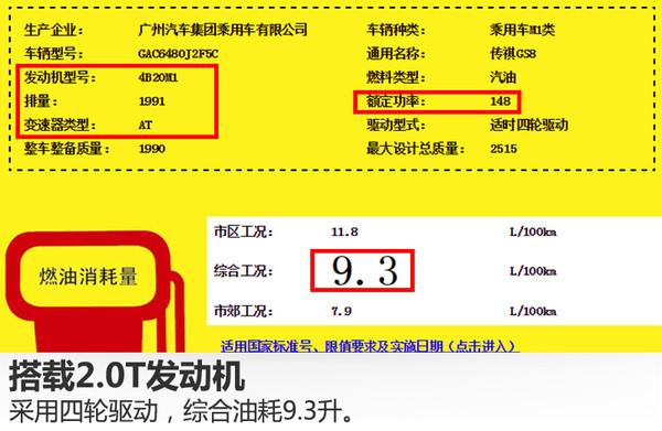 動力方面,從國家工信部公布的信息可知,廣汽傳祺GS8將搭載一臺型號為4B20M1的2.0升直列四缸渦輪增壓發(fā)動機,額定功率148千瓦,匹配6速自動變速箱。百公里綜合油耗分別為:兩驅(qū)車型8.7升,四驅(qū)車型9.3升。
