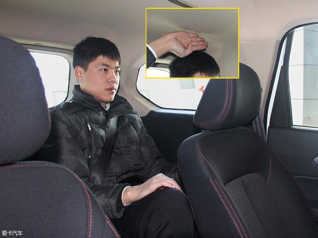 模特身高183cm,坐進(jìn)駕駛位,將座椅位置調(diào)至最低,頭部還有一拳左右的余量。