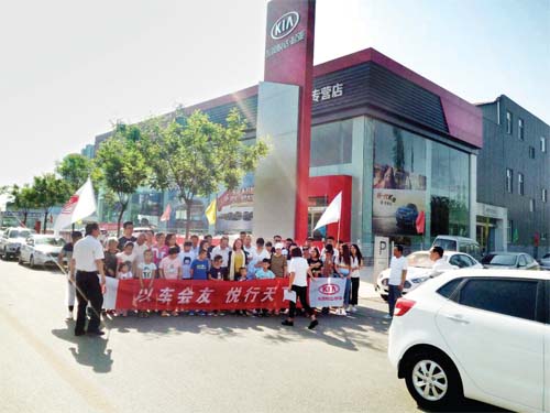 活動當天天氣晴朗,店內工作人員從早上7點半開始就陸續(xù)到店進行準備工作,8點開始車友們陸續(xù)到店,將車順序停好后便有條不紊地進行報名和簽協(xié)議工作,維修技師忙著檢查車輛,銷售顧問忙著粘貼車貼、會徽和車號牌。到8點30分的時候,車友報到工作順利就緒,接著車友會工作人員又進行了車輛安全知識和路途注意事項的提醒與活動行程的安排,然后全體車友會成員和工作人員一起合影留念。9點半以后23輛起亞車帶著東風悅達起亞的文化和祝福,浩浩蕩蕩出發(fā)了,行程中車隊引來了路人的圍觀與矚目。