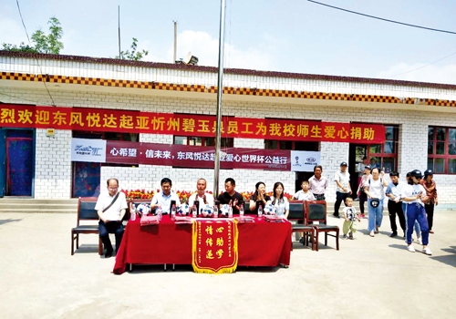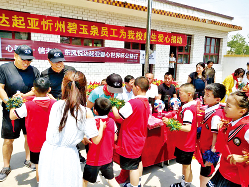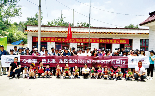2018年6月2日“心希望信未來(lái)”東風(fēng)悅達(dá)起亞世界杯公益行活動(dòng)如期成功舉行。本次活動(dòng)由東風(fēng)悅達(dá)起亞廠家冠名支持,由忻州碧玉泉公司員工、部分保有客戶及家屬、意向客戶及媒體工作人員共60多人和代縣兩界溝小學(xué)全體師生共同參與。