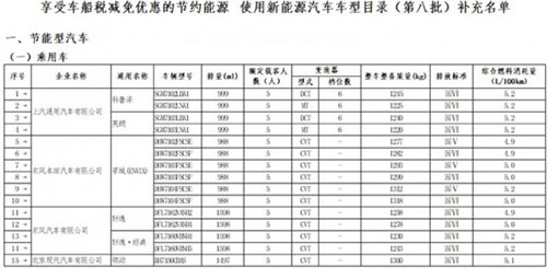 4月17日工信部公示了《享受車船稅減免優(yōu)惠的節(jié)約能源