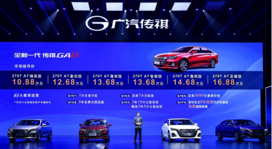 8月23日,全新一代傳祺GA6在成都正式上市。全新一代傳祺GA6帶來了6個版本,提供赤焰紅、冰海藍、珠光白、鈦金色、典雅黑、星光銀等6種顏色,售價為10.88萬元-16.88萬元,另有6大尊享政策:凡在10月31日前購買新車,可享受1萬元起首付、至高1萬元貼息、至高5000元置換補貼、5年免費無限流量,以及3年10萬公里質(zhì)保+贈送2年5萬公里延保,首任車主還享受8年免費代步車服務(wù)+免費道路救援。