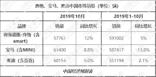 今年四季度首月,在整體車市回暖不及預(yù)期的情況下,引領(lǐng)高檔車市場的奔馳、寶馬、奧迪均交出不俗成績,全面實現(xiàn)正向增長。10月,寶馬、奧迪在華銷量均超6萬輛;奔馳則以12%的兩位數(shù)增長,成為當月BBA中增速最高的品牌。