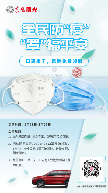 針對(duì)疫情期間“一罩難求”的問題,東風(fēng)小康公司推出了“萬只口罩限量免費(fèi)領(lǐng)取”活動(dòng),從現(xiàn)在至3月29日,風(fēng)迷商城將每天免費(fèi)送出100份N95、一次性醫(yī)用口罩,為用戶獻(xiàn)上專屬關(guān)愛。 不僅如此,東風(fēng)小康公司還心系醫(yī)務(wù)工作人員,致敬逆行者,旗下東風(fēng)風(fēng)光品牌推出了感恩“三重禮”,醫(yī)務(wù)人員購買東風(fēng)風(fēng)光SUV在享正常補(bǔ)貼政策外,額外享至高6000元廠家購車直補(bǔ);尊享至高10000元購車置換補(bǔ)貼;享全年免費(fèi)基礎(chǔ)保養(yǎng)、全車健康凈化。 沒有一個(gè)春天不會(huì)到來,面對(duì)疫情之下的復(fù)產(chǎn)復(fù)工挑戰(zhàn),東風(fēng)小康公司以積極的應(yīng)對(duì)策略,一手抓“防疫”,一手穩(wěn)生產(chǎn),在車市低迷的環(huán)境下,為行業(yè)的健康發(fā)展樹立信心,以責(zé)任、擔(dān)當(dāng)、進(jìn)取之心,靜待春暖花開! (責(zé)任編輯:李冬梅) |