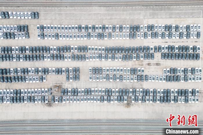 2023年9月,位于重慶江津的川黔鐵路小南埡站內(nèi),等待裝運發(fā)往海外的汽車。記者 何蓬磊 攝