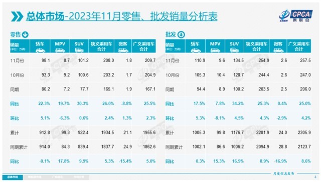 新能源車方面,乘聯(lián)會認為,2024年新能源車的市場增長預(yù)計相對樂觀:新能源乘用車批發(fā)預(yù)計達到1100萬輛,凈增量230萬輛,同比增長22%,滲透率達到40%,新能源乘用車保持較強增長勢頭。(中新經(jīng)緯APP)
