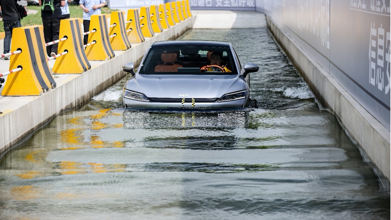 在鐵人三項中,同一輛風(fēng)云A9L模擬極端環(huán)境與事故場景,先經(jīng)過超越國家4倍標(biāo)準(zhǔn)的400mm深水區(qū),隨后又以40km/h時速、40mm重疊量完成刮底實驗,并以超越行業(yè)通常做法2.95~3.36倍的55km/h的速度完成中心柱碰。三大實驗后,車輛動力系統(tǒng)完整,電池包無泄漏且絕緣電阻穩(wěn)定在500Ω/V以上。