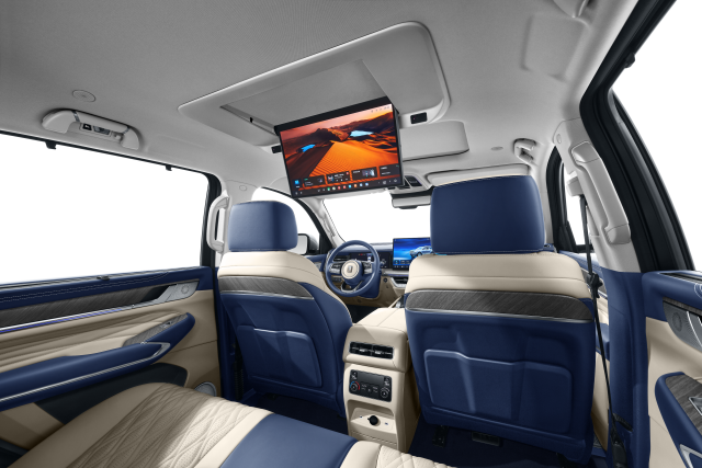 在豪華科技感和交互層面,全新坦克500后排17.3英寸吸頂屏8.2mm超窄邊框讓視覺更顯輕盈。前后排屏幕均采用鋁硅玻璃蓋板鍍AGARAF工藝,其超低反射率能夠防眩光、抗反射,強光下依舊清晰可見。在交互上,后排屏幕還可以通過語音、手勢、觸控、手機、遙控、后排扶手屏多達6種操控模式進行操控,老人按實體鍵、孩子揮揮手,都能輕松上手。駕駛位頭枕音響,不打擾后排的休憩。50瓦雙無線充電面板,貼心照顧副駕,隨時保持滿電狀態(tài)。5.4L車載冷暖冰箱隨時待命,最大調節(jié)范圍-6℃到50℃,無論是夏日冰飲、還是冬日暖茶,都能時刻貼心。遠紅外夜視系統更能在無光、眩光的情況下提前看清 120 米外的車輛、90 米外的行人,讓晚上開車像白天一樣踏實。