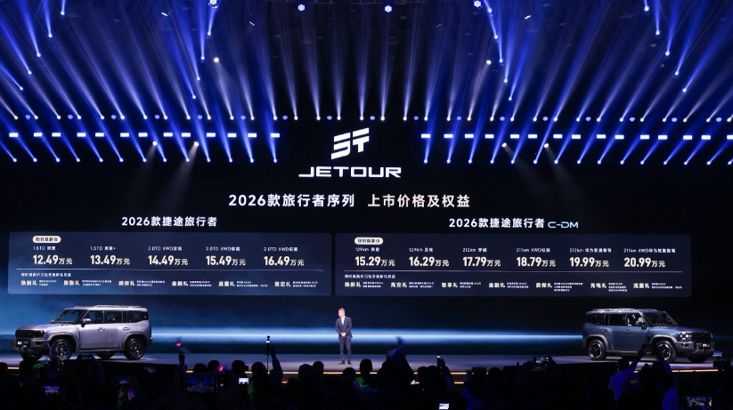 此次活動(dòng)上2026款捷途旅行者和捷途旅行者C-DM正式上市。2026款捷途旅行者,限時(shí)煥新價(jià)12.49萬(wàn)—16.49萬(wàn)元,并提供6重購(gòu)車好禮,捷途旅行者C-DM,限時(shí)煥新價(jià)15.29萬(wàn)—20.99萬(wàn)元,提供7重購(gòu)車好禮。