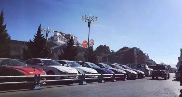 從照片中的豪車進(jìn)藏小分隊(duì)正臉中可以看到奔馳、保時(shí)捷、法拉利赫然出現(xiàn)在了征服西藏的小隊(duì)伍中。