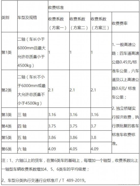 貨車計費(fèi)方式由計重收費(fèi)改為按車型收費(fèi)。以前貨車計重收費(fèi),是以收費(fèi)站現(xiàn)場稱出的車貨總質(zhì)量為依據(jù)計收通行費(fèi),不同噸位車輛收費(fèi)金額不同,“多裝多收,少裝少收”。改為按車型收費(fèi)后,以車輛軸數(shù)為依據(jù)計收通行費(fèi),同一軸型車輛,不論裝多裝少,都執(zhí)行同一收費(fèi)標(biāo)準(zhǔn)。