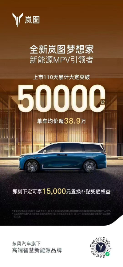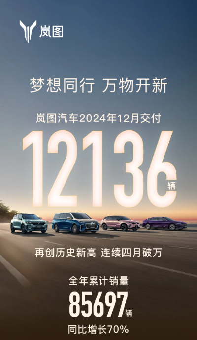 展望未來,嵐圖汽車CEO盧放表示:“2025年將推出4款以上全新或改款車,以更加完善的SUV、轎車和MPV產(chǎn)品布局,進(jìn)一步滿足廣大用戶的個(gè)性化需求。全新嵐圖夢(mèng)想家將以領(lǐng)先一代的產(chǎn)品力,成為絕對(duì)爆款,夯實(shí)‘頂流’地位,同時(shí)嵐圖繼續(xù)打造更多爆款,全力沖刺全年20萬(wàn)輛的銷量目標(biāo),為更多用戶提供持續(xù)、穩(wěn)定、靠譜的產(chǎn)品和服務(wù)。”