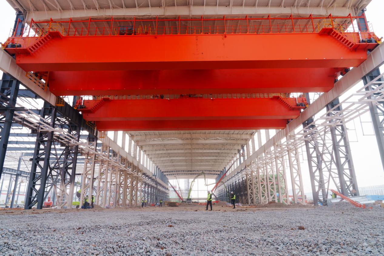 陽(yáng)春三月,武漢經(jīng)開(kāi)區(qū)軍山新城的東風(fēng)汽車一體化壓鑄產(chǎn)業(yè)化項(xiàng)目建設(shè)現(xiàn)場(chǎng)是一片繁忙景象:鋼結(jié)構(gòu)吊裝進(jìn)度突破90%,地面碎石層施工完成80%,工人們正為最后一組天車軌道安裝全力奮戰(zhàn)。