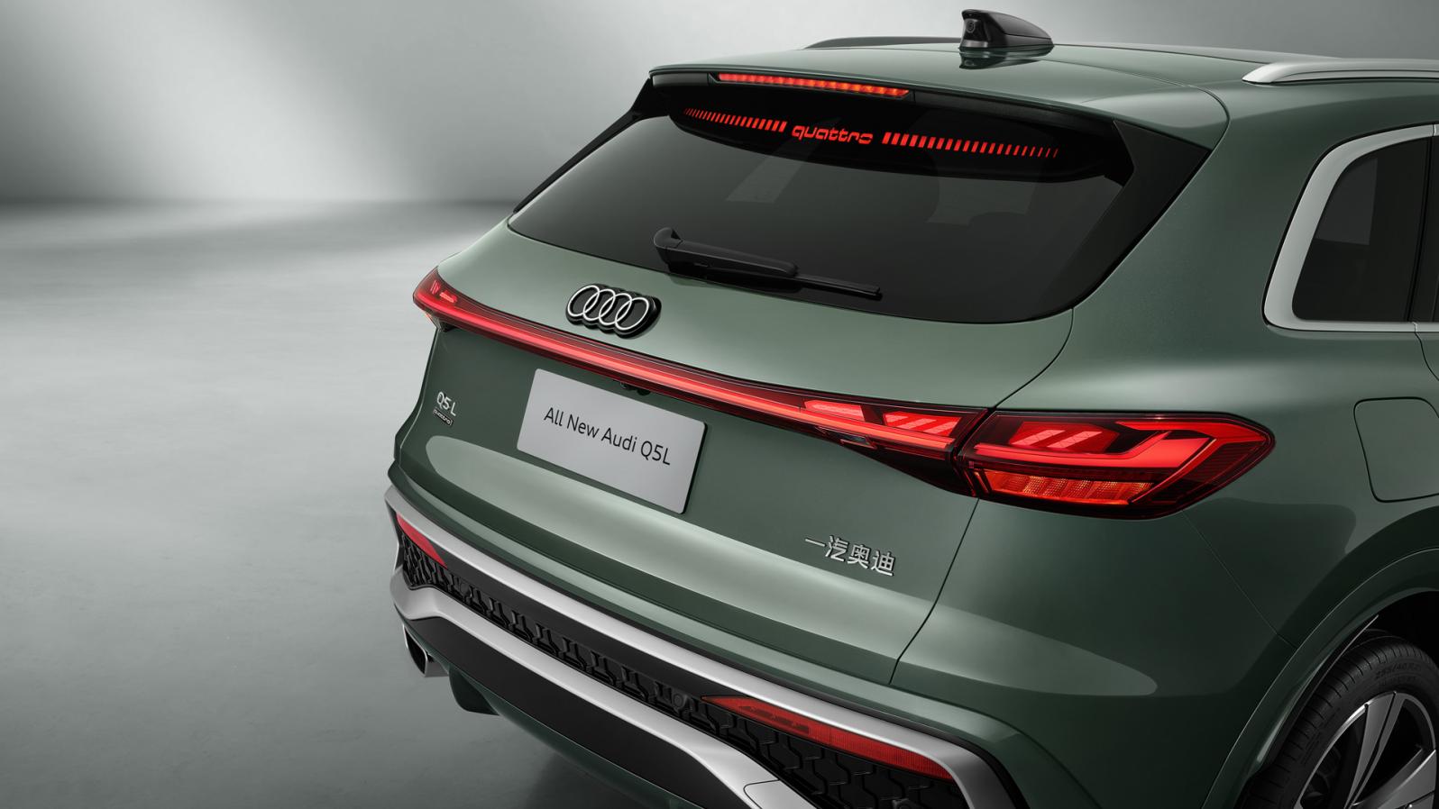 全新奧迪Q5L搭載quattro高位剎車燈,當(dāng)踩下剎車后視覺效果非常醒目