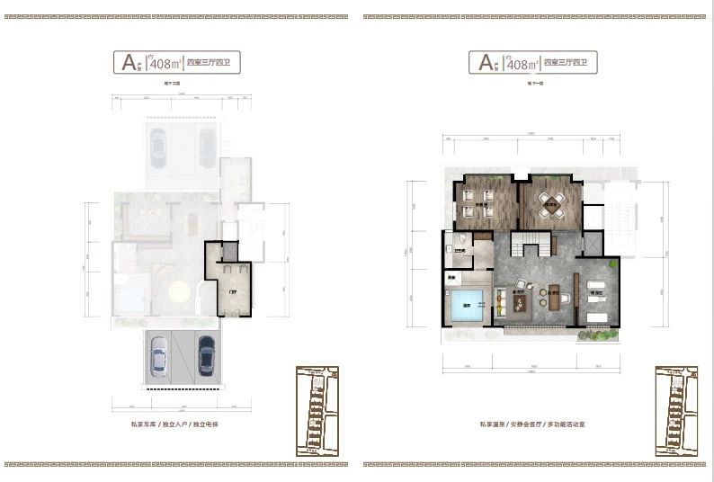 地下室設(shè)計(jì)不同于傳統(tǒng)地下室,只能為儲(chǔ)藏室使用,而小區(qū)地下室層高和地上建筑面積層高一致,達(dá)到了3.2米,沒(méi)有空間壓抑感,在南北庭院都設(shè)有1.2米的通風(fēng)采光井,室內(nèi)鋪設(shè)地暖及溫泉管道,上下水和衛(wèi)生間,私密性特強(qiáng),可以設(shè)計(jì)桑拿房,健身房,保姆間,洗衣房,酒窖及休閑娛樂(lè)等多功能區(qū)域,對(duì)于鄰居既不會(huì)產(chǎn)生噪音干擾,更不會(huì)打擾到家人的休息,在提高了生活品質(zhì)的同時(shí)也不會(huì)由空間局促感,地下室可以直通地下私家車庫(kù),車庫(kù)層高4.2米,寬約7-10米,至少可以容納家用汽車三輛。