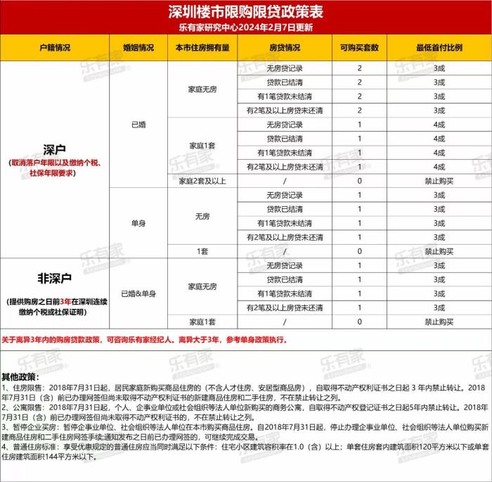 此次,深圳對戶籍居民家庭購房、非戶籍居民家庭及成年單身人士(含離異)的限購政策均有所調(diào)整。