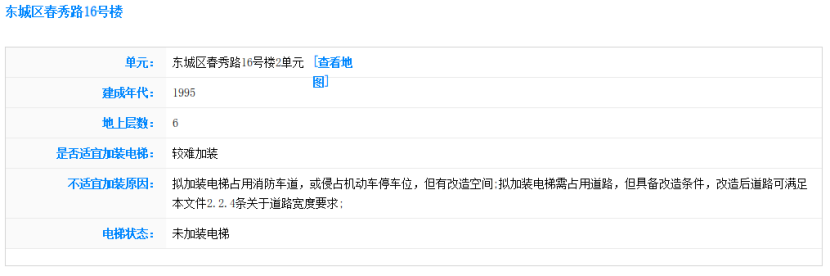 北京市住房城鄉(xiāng)建設(shè)委組織各區(qū)對(duì)本轄區(qū)內(nèi)市屬老舊小區(qū)約2萬多棟既有多層住宅樓、10萬余個(gè)單元門,從建筑結(jié)構(gòu)安全、空間條件和居民意愿等方面進(jìn)行了初步摸排評(píng)估,在此基礎(chǔ)上,會(huì)同市有關(guān)部門開發(fā)了加梯地圖專欄,為居民實(shí)現(xiàn)既有住宅“加梯夢”提供了一份詳細(xì)的攻略圖。