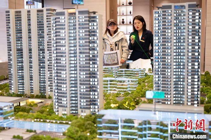 圖為2月28日,山西省太原市,置業(yè)顧問在售樓部為市民推介商品住宅。 中新社記者 韋亮 攝
