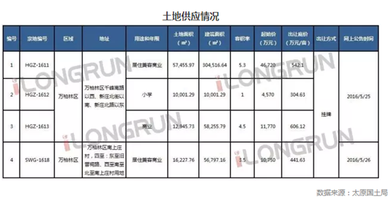 2016年5月第四周(5.23—5.29)傳統(tǒng)樓市旺季的“紅五月”進入收官階段,回顧五月,太原樓市沒有出現(xiàn)“紅火”二字,樓市整體表現(xiàn)冷清,連續(xù)兩周成交回落。本周共有3個項目開盤、加推,共520套房源成交,環(huán)比下降36%,看來五月樓市將以冷淡收官。 本周熱點 政策:國土資源部:89城市周邊永久基本農田劃定 國土資源部近日宣布,全國106個重點城市中已有89個城市周邊永久基本農田劃定。國土資源部、農業(yè)部聯(lián)合下發(fā)《關于進一步做好永久基本農田劃定工作的通知》,要求在已有劃定永久基本農田工作的基礎上,將城鎮(zhèn)周邊、交通沿線現(xiàn)有易被占用的優(yōu)質耕地優(yōu)先劃為永久基本農田。先從500萬以上人口特大城市、省會城市、計劃單列市開始,與城市開發(fā)邊界和生態(tài)保護“紅線”劃定協(xié)同開展,與經(jīng)濟社會發(fā)展規(guī)劃、土地利用總體規(guī)劃等銜接,同時督促各地部署落實其他城鎮(zhèn)周邊永久基本農田劃定。 城建:太原首個體育主題公園即將迎客 設施全部免費 體育主題公園位于太祁高速晉源段以東、晉源新城以西,龍山大街兩側,總占地面積近200畝。目前,公園主體建設已經(jīng)完成,正在進行公廁裝修、草坪鋪設、設施清理等掃尾作業(yè),公園綠化微地形建設已完成;8660平方米的體育場硬化工程已完成;栽植白皮松、銀杏、朝鮮槐、赤峰楊、平頂松以及各類樹木等近8000株,綠化面積達77%,公園綠樹成蔭,處處曲徑通幽。下一步,體育主題公園還將陸續(xù)進行軌道棋、指示牌、果皮箱等的安裝。預計6月底前開門迎客。 土地市場 土地供應: 2016年5月第四周(5.23—5.29),本周有四宗土地供應。