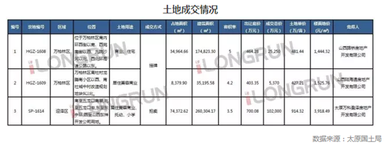 朗潤(rùn)解析:本周土地成交三宗,其中SP-1614位于五龍口,本地塊約111畝,總建面約26萬(wàn),樓面價(jià)3,918元/㎡,屬中小規(guī)模體量,規(guī)劃有幼兒及小學(xué)用地,周邊多個(gè)新建和在建的居民小區(qū),人口眾多,且人文氣息濃厚,發(fā)展成熟,萬(wàn)科以10.2億元拿下SP-1614五龍口一商住地,溢價(jià)率30.6%,該宗地同時(shí)還需配建5%保障房,預(yù)計(jì)未來(lái)將會(huì)是萬(wàn)科在太原的另一個(gè)高端項(xiàng)目;HGZ-1609為小米國(guó)際項(xiàng)目用地;HGZ-1608位于萬(wàn)柏林區(qū)南內(nèi)環(huán)西街以南、西苑南街以西、九院沙河以北、西北環(huán)高速公路以東,由路橋二公司開發(fā)案名擬為“路橋金澤華府”預(yù)計(jì)為品質(zhì)剛需項(xiàng)目。