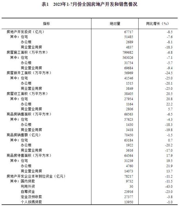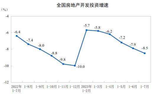 1—7月份,全國(guó)房地產(chǎn)開發(fā)投資67717億元,同比下降8.5%;其中,住宅投資51485億元,下降7.6%。