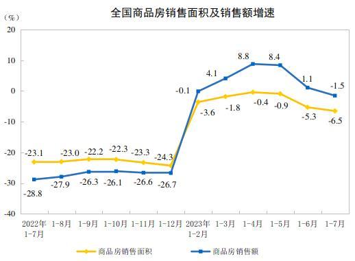 中新網(wǎng)8月15日電 國(guó)家統(tǒng)計(jì)局網(wǎng)站15日公布2023年1—7月份全國(guó)房地產(chǎn)市場(chǎng)基本情況。1—7月份,全國(guó)房地產(chǎn)開發(fā)投資67717億元,同比下降8.5%;商品房銷售額70450億元,下降1.5%。