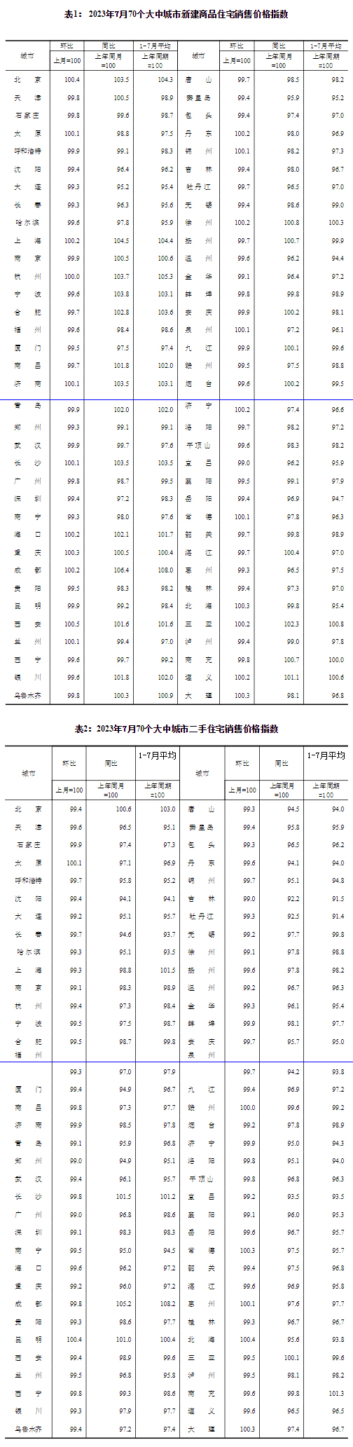 中新網(wǎng)8月16日電 國家統(tǒng)計(jì)局網(wǎng)站16日發(fā)布2023年7月份70個(gè)大中城市商品住宅銷售價(jià)格變動情況,國家統(tǒng)計(jì)局城市司首席統(tǒng)計(jì)師繩國慶該統(tǒng)計(jì)數(shù)據(jù)進(jìn)行解讀。2023年7月份,70個(gè)大中城市商品住宅銷售價(jià)格上漲城市個(gè)數(shù)減少,各線城市商品住宅銷售價(jià)格環(huán)比持平或下降、同比有漲有降。