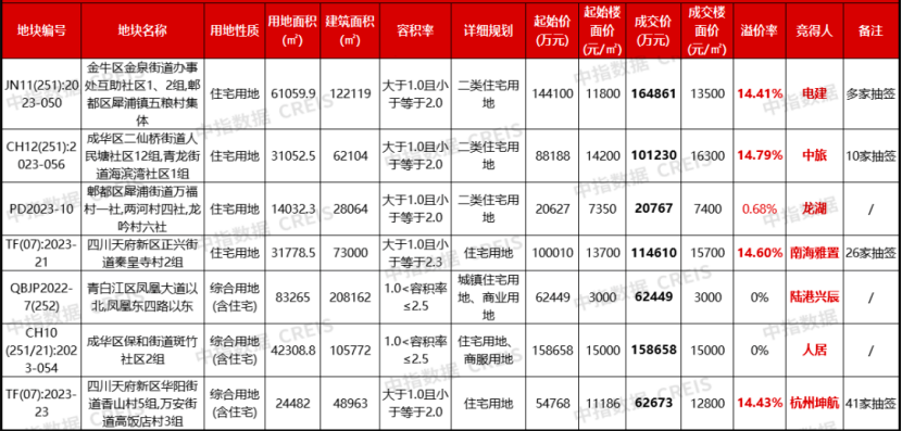 9月26日,成都推出新政,取消住宅清水限價(jià)、裝修限價(jià)及二手房指導(dǎo)價(jià)。本次土拍也是成都新政后的首次土拍,且是最后一次采用“限價(jià)競(jìng)買+抽簽競(jìng)得”的規(guī)則,未來將只保留“競(jìng)地價(jià)”的方式。即取消近三年的“限房價(jià)、限地價(jià)”的雙限政策和近七年的土拍熔斷機(jī)制,回歸到以“價(jià)高者得”的模式。