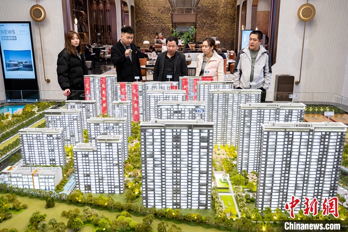 圖為3月7日,太原一家房地產(chǎn)公司新開(kāi)樓盤(pán)吸引購(gòu)房者關(guān)注。 中新社記者 韋亮 攝