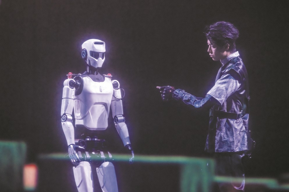 這是發(fā)生在中國大戲院長三角城市戲劇節(jié)中的最“科幻”一幕,國內(nèi)領(lǐng)先的機器人走出實驗室和展廳,以接地氣、親和的方式來到普通人身邊。面對這樣的場景,人們不再那么陌生——2025春晚上,張藝謀導(dǎo)演的《秧BOT》讓人形機器人略顯滑稽地扭起秧歌;上半年,半程馬拉松也迎來人形機器人“跌跌撞撞”的身影。“我們在探索一種可能性,試著模擬發(fā)生在未來的場景。”《巨物之城》藝術(shù)總監(jiān)、上海戲劇學(xué)院藝術(shù)科技與管理學(xué)院副院長沈倩對記者說,“無論對于機器人還是演藝產(chǎn)業(yè)來說,都具有破圈的意義?!闭\然,機器人仍在亦步亦趨地努力跟上人類的節(jié)奏,但其不斷前進的腳步已經(jīng)令人激動。面對“人機共生”的時代命題,上海邁出了全國舞臺實踐的第一步。