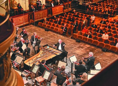6月5日,維也納愛樂樂團在維也納金色大廳舉行新冠肺炎疫情解封后的首場音樂會。根據(jù)防疫規(guī)定,現(xiàn)場觀眾人數(shù)被限定在100名。新華社發(fā)