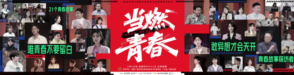 由國家廣播電視總局網(wǎng)絡(luò)視聽節(jié)目管理司等指導(dǎo)的網(wǎng)絡(luò)綜藝《當燃青春》將于5月4日開播。節(jié)目以青春視角進行故事講述,展現(xiàn)當代青年敢想敢為、善作善成的奮進風(fēng)采。