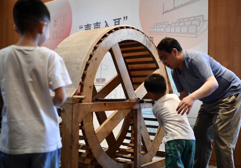 雖不是明星藝術(shù)家參與的互動(dòng)活動(dòng),但現(xiàn)場(chǎng)卻坐得滿坑滿谷,一臺(tái)巨大的風(fēng)車(chē)成為切入點(diǎn)。剛工作時(shí),鄭晨曾經(jīng)“自以為是”地為這臺(tái)大家伙起了一個(gè)稍顯學(xué)術(shù)的名字,但前輩一句話卻化繁為簡(jiǎn):這就是“風(fēng)車(chē)”,作用就是營(yíng)造風(fēng)聲。通過(guò)搖動(dòng)手柄,依靠帆布摩擦,逼真的風(fēng)聲回蕩耳畔。而現(xiàn)場(chǎng)幾位小朋友也被請(qǐng)上臺(tái),體驗(yàn)“造風(fēng)”的樂(lè)趣。不過(guò)這個(gè)工作其實(shí)是個(gè)體力活兒,鄭晨說(shuō)自己曾經(jīng)因?yàn)樵谝粋€(gè)戲中的強(qiáng)度有點(diǎn)大,甚至因?yàn)樾乜谔鄱婚W念“自己究竟是要告別人藝還是告別人世?!?/p>