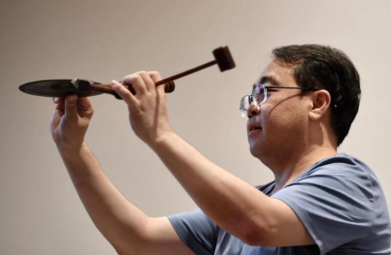 人藝的看家戲《茶館》,每一場(chǎng)演出的音效,都是鄭晨現(xiàn)場(chǎng)營(yíng)造的,大家開(kāi)玩笑說(shuō),鄭晨把《雷雨》的音效干成了非遺。在舞臺(tái)的側(cè)臺(tái),鄭晨的工作臺(tái)上擺滿了東西,用他的話說(shuō),那些都是老北京的響器,他也將自己的這些寶貝帶到了此次的講座中。磨刀人用的“驚閨”,剃頭的用的“喚頭”,算命的“鑼”以及賣(mài)煤賣(mài)炭的“鼓”……“特別是《茶館》的第一幕,鄭晨模擬了賣(mài)熨斗的、炒菜的、賣(mài)柿子的、賣(mài)菱角的,磨刀的剔頭的,甚至還有兩頭騾子……“雖然同是騾子,但秦二爺和龐太監(jiān)的動(dòng)靜也不一樣,秦二爺春風(fēng)得意,騾子的蹄聲很快,最后還打個(gè)響鼻兒;龐太監(jiān)的騾子則和他這個(gè)人一樣,慢騰騰沒(méi)有一絲生氣?!?/p>