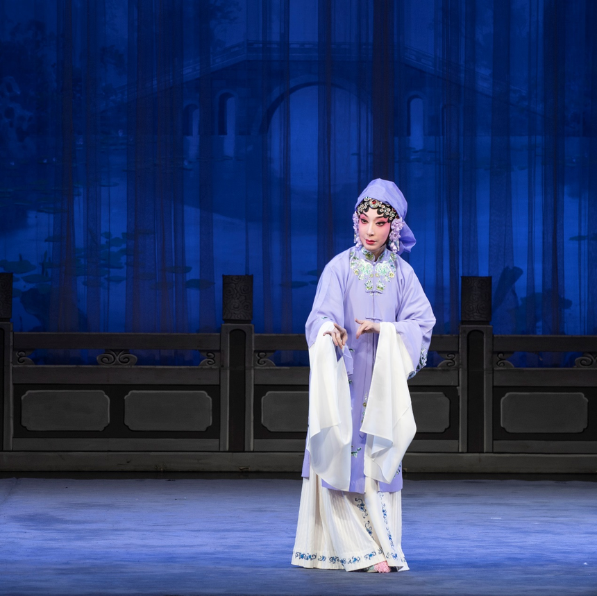 韓宜珈理解大部分觀眾對尚派武戲的偏愛,因為雙陽公主是颯爽的,帶著少年感的,梁紅玉是巾幗不讓須眉的元帥,是雌雄同體的,崇尚傳承的尚派何其先鋒地引領了幾十年后的“大女主”風尚。她也希望越來越多的觀眾了解,尚派藝術的豐富體現(xiàn)在剛?cè)岵奈膽蛑?,體現(xiàn)在以錚錚硬氣為底色的青衣唱腔中——那些被約定俗成定義為“閨秀”的女子,她們承載著古典美學的氣韻時,同樣有復雜激烈的內(nèi)心,她們在女性被規(guī)訓的倫理秩序里,也有竭力伸張的自由意志和廣闊的精神世界。