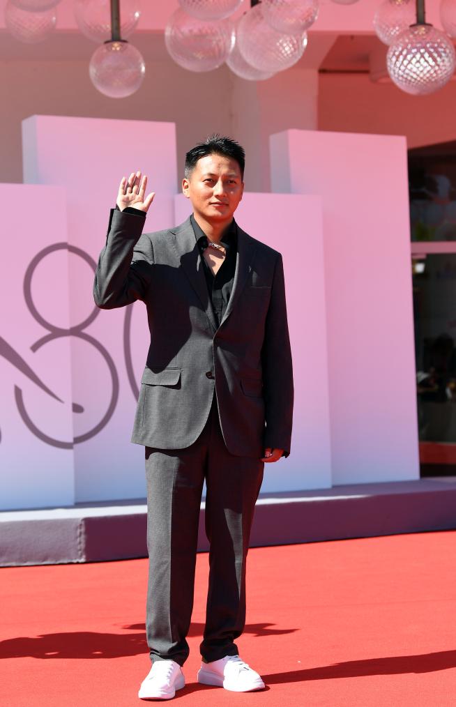 9月6日,在意大利威尼斯,電影《雪豹》執(zhí)行導(dǎo)演久美成列亮相首映式紅毯。新華社記者 金馬夢(mèng)妮 攝