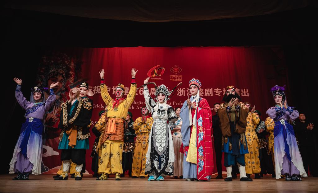 9月5日,在肯尼亞內(nèi)羅畢,婺劇演員在表演結(jié)束后謝幕。新華社記者 王冠森 攝