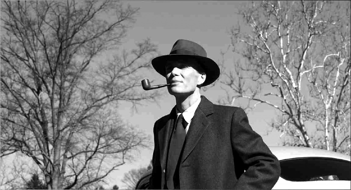 奧本海默被稱作“美國的普羅米修斯”,影片也是從這個典故開局的,這意味著奧本海默不僅向榮耀進發(fā),還將經(jīng)受普羅米修斯式的懲罰與煎熬。奧本海默曾在電視節(jié)目中眼瞼低垂地說:“我現(xiàn)在成了死神,世界的毀滅者!”是的,人類自他開始,擁有了自毀的能力。不過諾蘭并沒有過于渲染這種負面情緒,除了演講時閃過的錯覺,以及聽證會上赤裸裸的幻象,奧本海默大多時候都是率性而為,或麻利利的,哪怕后期的憂郁深邃中,也不乏風骨。影片對歷史的關(guān)鍵節(jié)點和細節(jié)不遺余力,但對鏡像中走來的歷史人物又是呵護有加,以至于看上去,他更像是諾蘭的奧本海默——一個比奧本海默還奧本海默的奧本海默。
