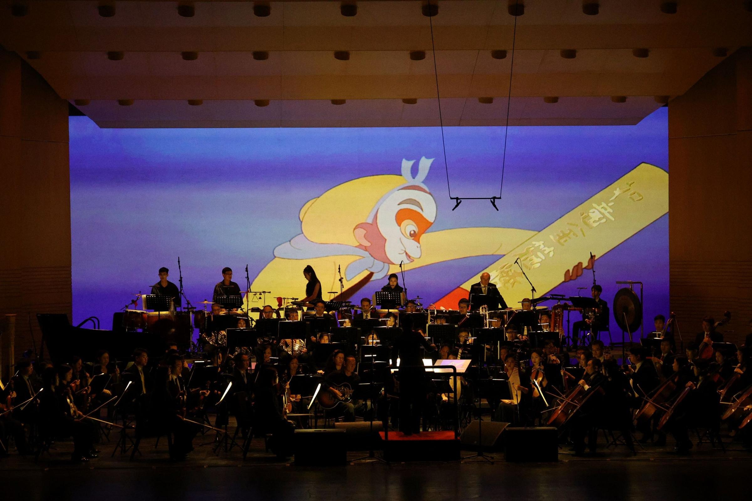 1922年,萬氏兄弟創(chuàng)作出中國首部動畫短片《舒振東華文打字機》,開啟了中國動畫新時代。轉(zhuǎn)眼間,百年已過,為紀念中國動畫的傳承發(fā)展,交響舞曲《大鬧天宮》的創(chuàng)作由此發(fā)軔。這部作品以《大鬧天宮》動畫片為基礎(chǔ),共分為“花果山美猴王”“東海得金箍棒”“官封弼馬”等9個樂章,用樂隊演奏配合影片播放的方式講述了孫悟空怒反天庭這段家喻戶曉的神話故事。