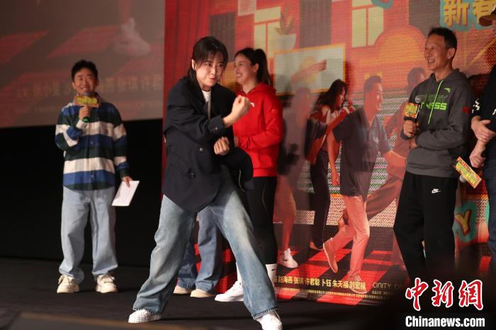 《熱辣滾燙》的主創(chuàng)團(tuán)隊與觀眾合影。中新網(wǎng)記者 張亨偉 攝