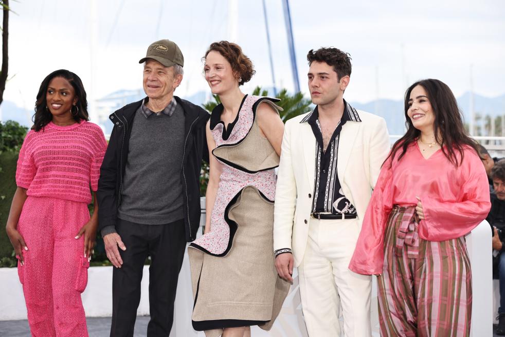 5月15日,在法國南部小城戛納舉行的第77屆戛納國際電影節(jié)上,“一種關注”單元評委會主席澤維爾·多蘭(右二)攜眾評委亮相拍照式。新華社記者 高靜 攝