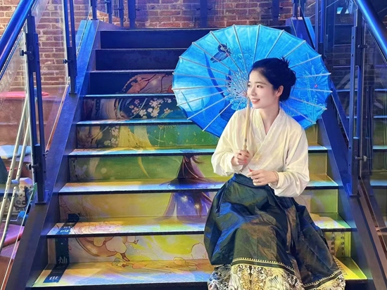 浙江省杭州市浙影時代影城西湖文化廣場店推出《傘少女》撐傘場,圖為一名觀眾在場內(nèi)撐傘。凌燕供圖